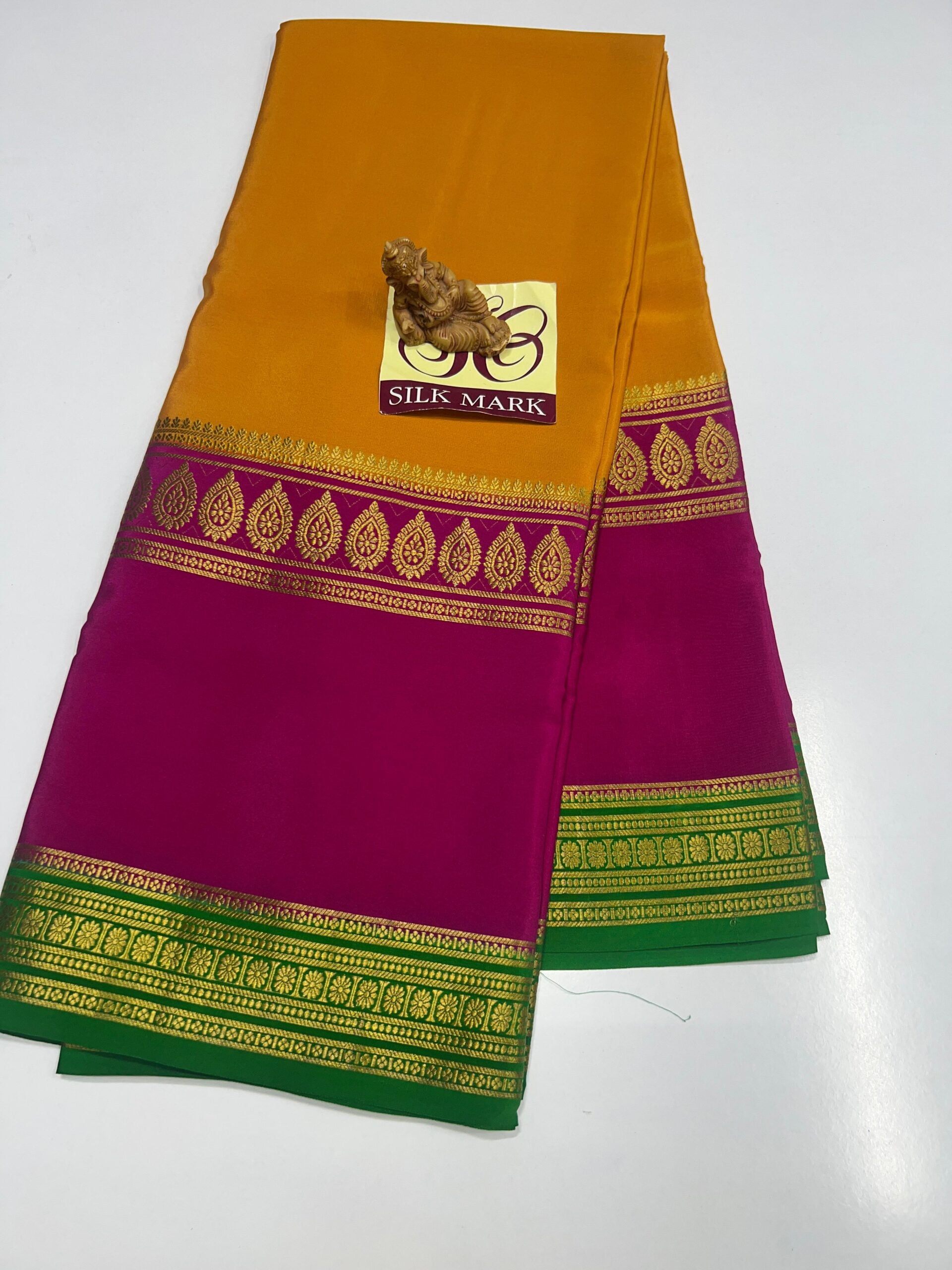 Fabric: Pure Mysore Crepe Silk .Blouse: With blouse piece Texture: Soft & lightweight Occasion: Festive / Traditional wear