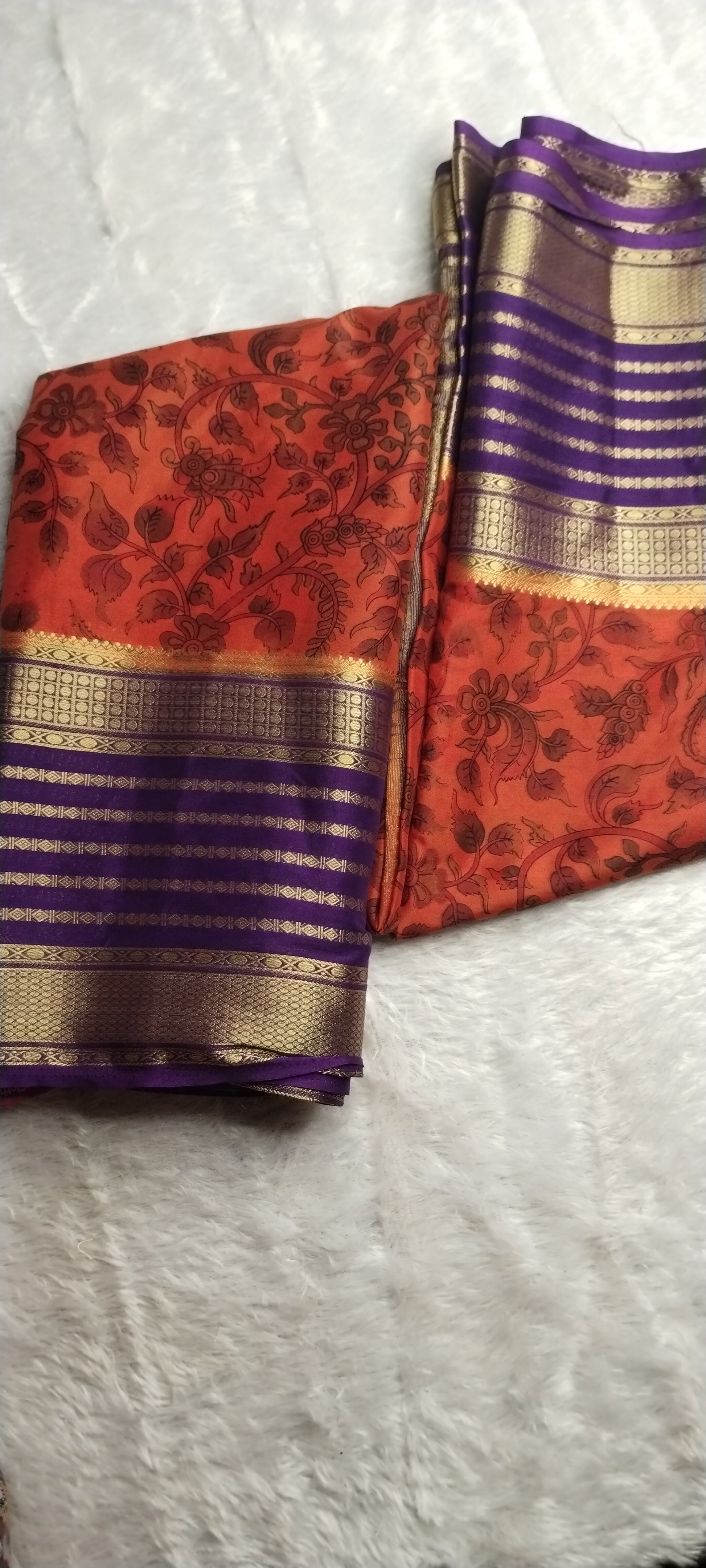 Semi crepe printed rust orange saree