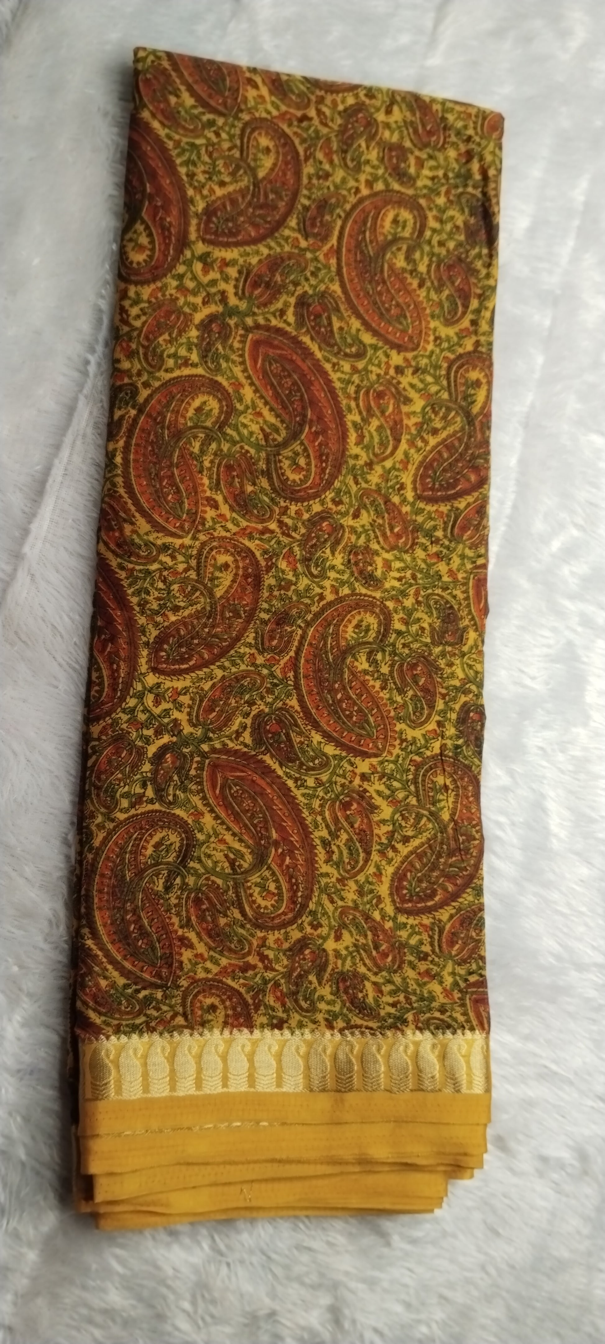 Elevate your festival wardrobe with this semi crepe silk saree, crafted to capture the refined elegance of pure Mysore silk at an accessible price point. The luxurious drape and subtle texture of semi crepe fabric create a sophisticated silhouette perfect for celebrations and special occasions. This saree arrives with a coordinating running blouse, ready to wear. Maintain its premium appearance with gentle dry cleaning only. An ideal choice for those seeking designer-quality aesthetics without the premium investment.