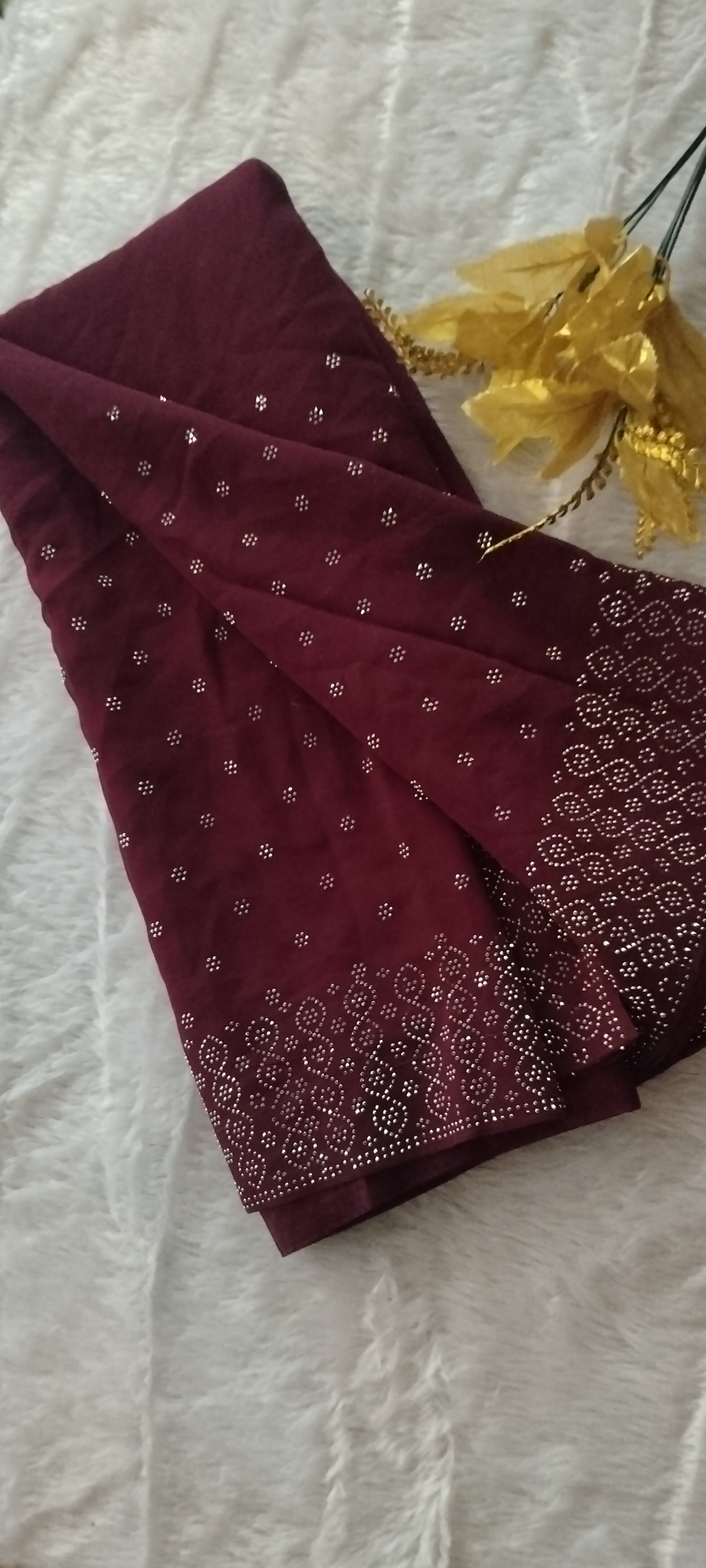 🍷 Wine Colour Georgette Stone Work Saree